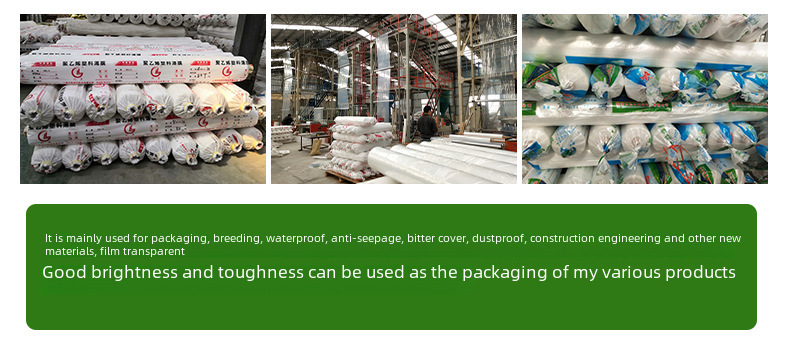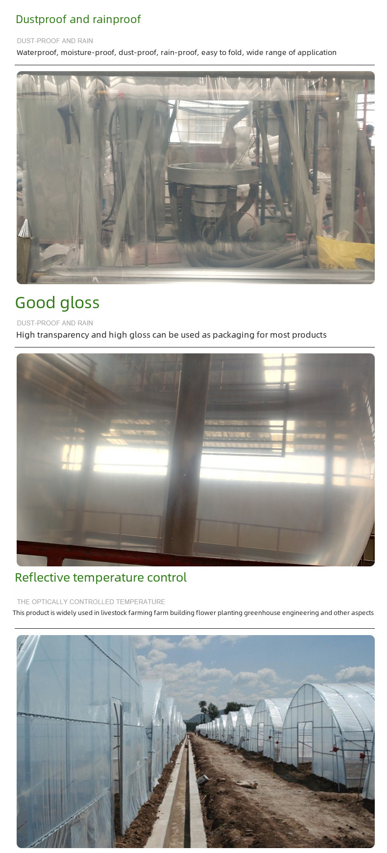 Название продукта Plastic film, greenhouse film, agricultural film, pe film, white film, black film, po film, grouting film, recycled material film, plastic cloth, white transparent plastic cloth