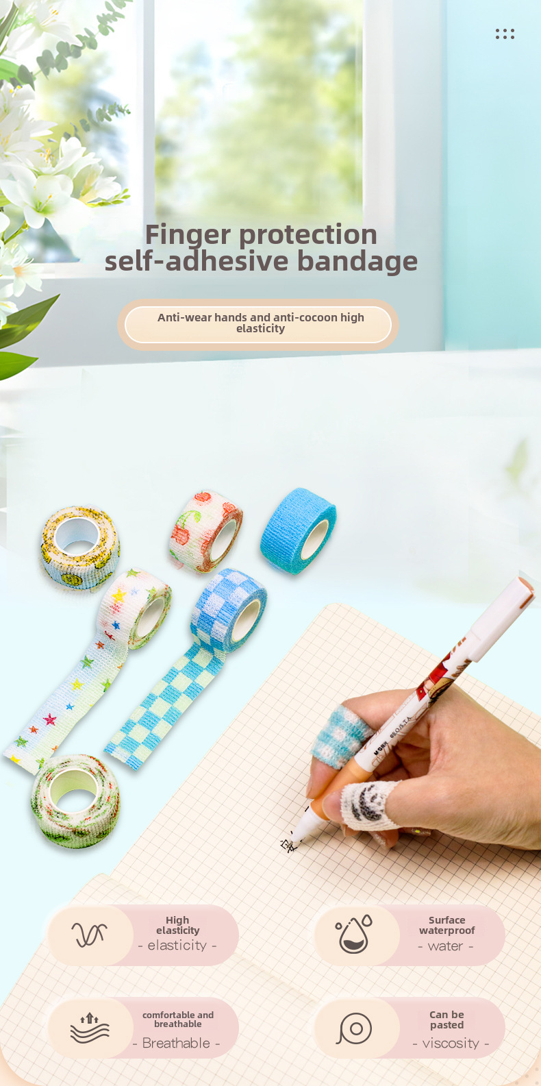 Нетканый самоклеящийся бинт для защиты на открытом воздухе, для письма в офисе, защиты пальцев, поддержка запястья