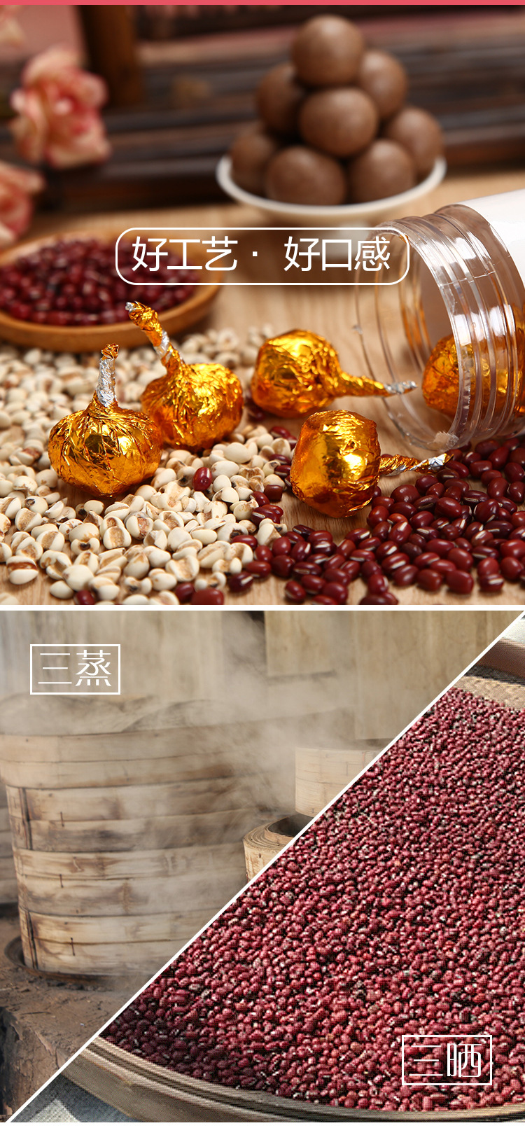 Основные сырьевые материалы Black sesame seeds, black rice, sprouted sugar, honey