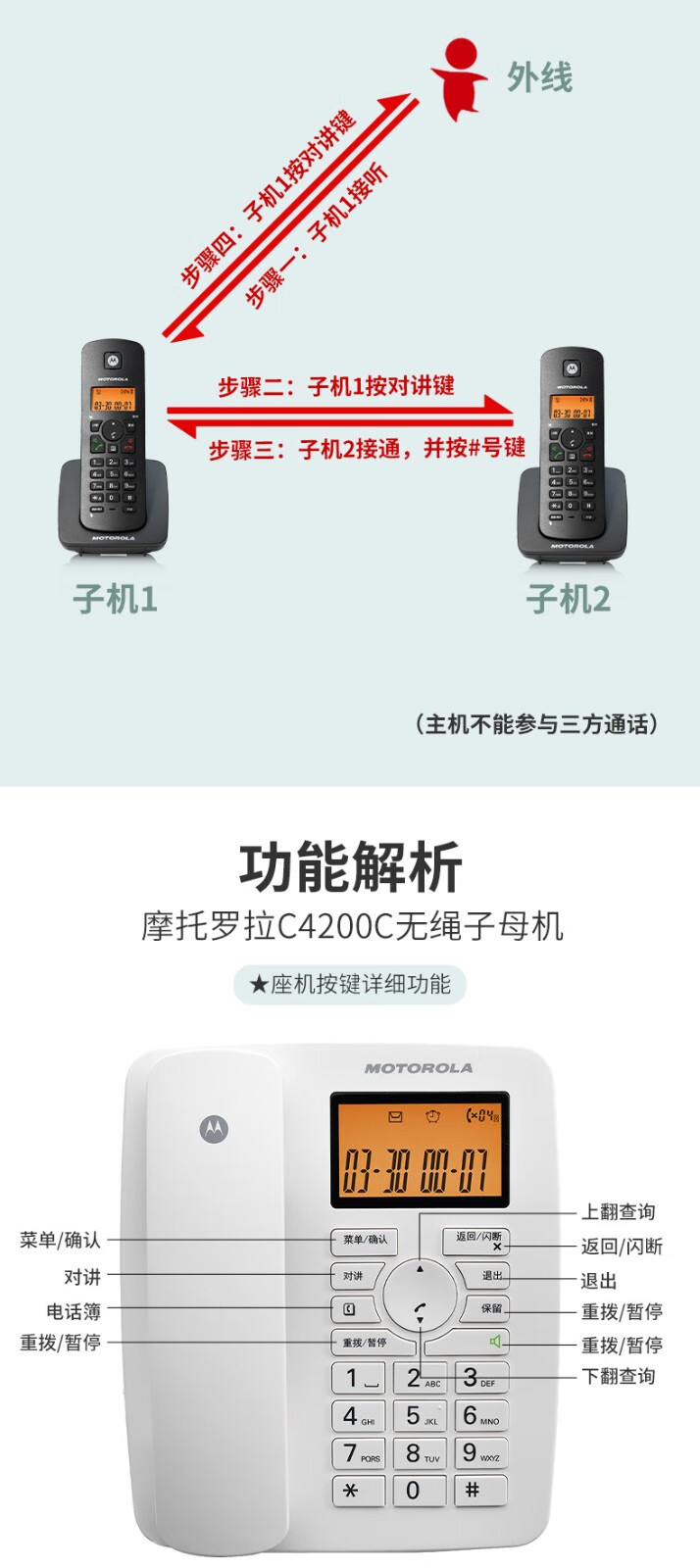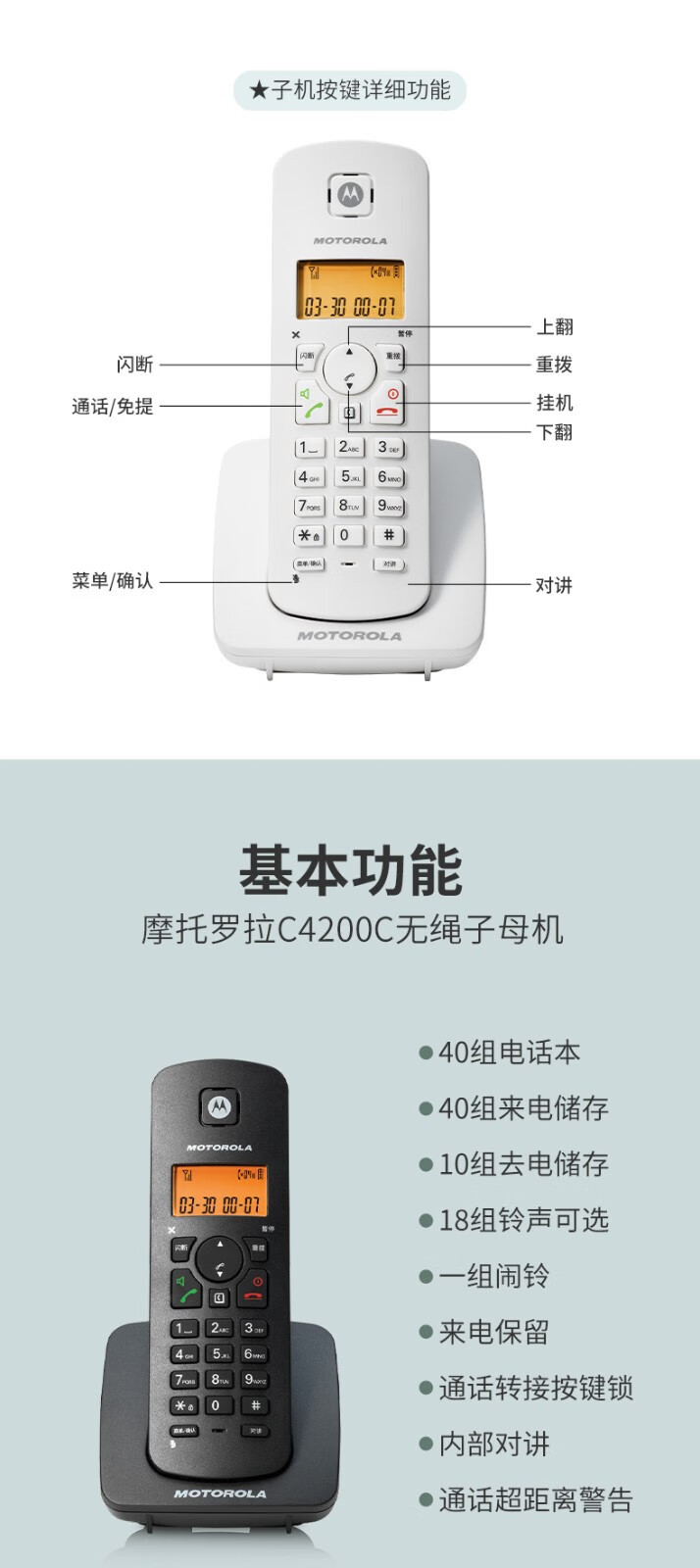 Беспроводной телефон Motorola C4200C для офиса, стационарный телефон для мамы и сына