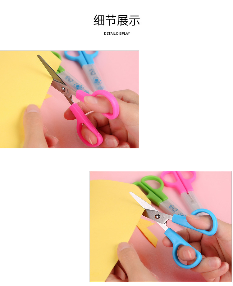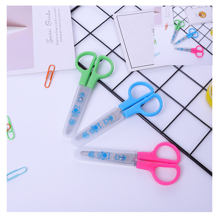 6021 мультяшные ножницы для начальной школы, детские ножницы для ручной работы с чехлом для детского сада, безопасные канцелярские ножницы оптом
