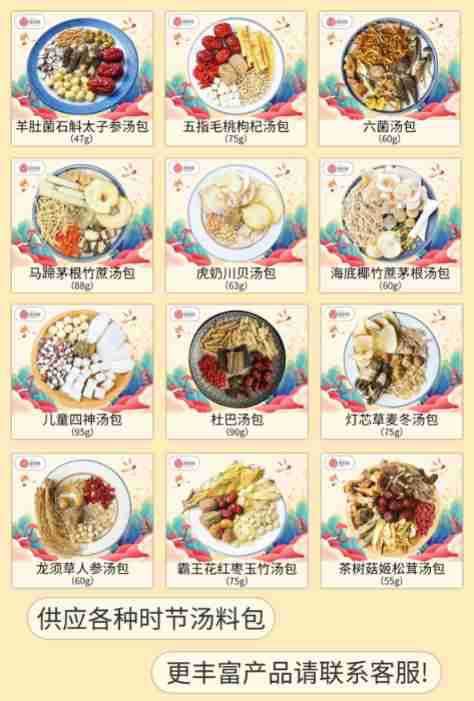 ![]() | T07 #80g huaishan Yuzhu soup bag | ¥5.8 / ≈ 70 ₽ | 9987 | 4818479096376 | |
