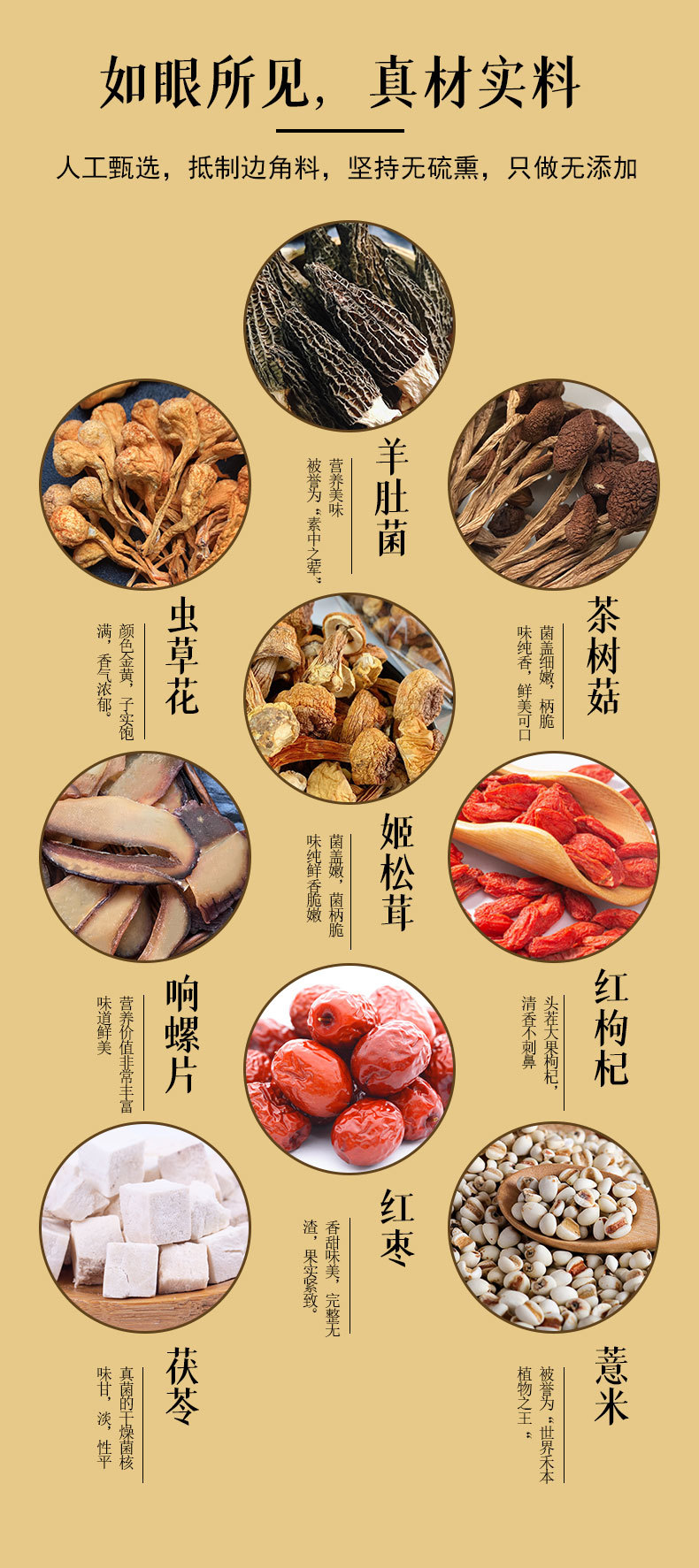 Основные сырьевые материалы Red jujube, medlar, flower gum, fungus, Polygonatum odoratum, lily, etc