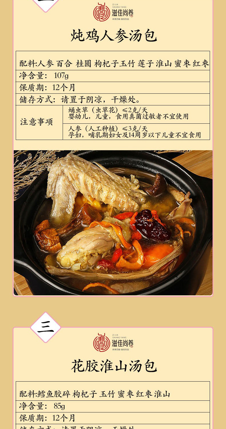 ![]() | T02# stewed chicken ginseng soup bag 107g (ginseng longan lily soup) | ¥8.8 / ≈ 106 ₽ | 6869 | 4835284817902 | |
