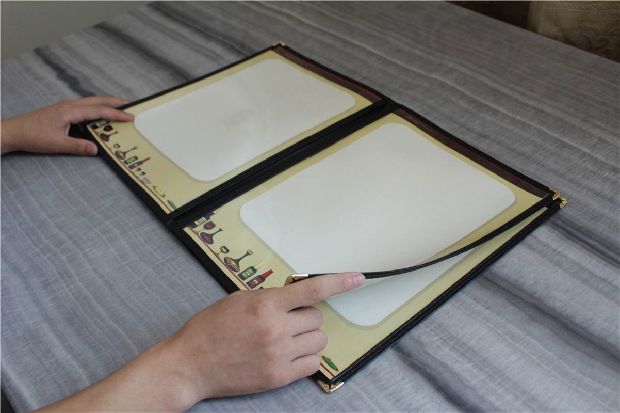 западный стиль, прозрачное меню A4, ПВХ, папка для заказов, прайс-лист, 3 листа, 6 сторон