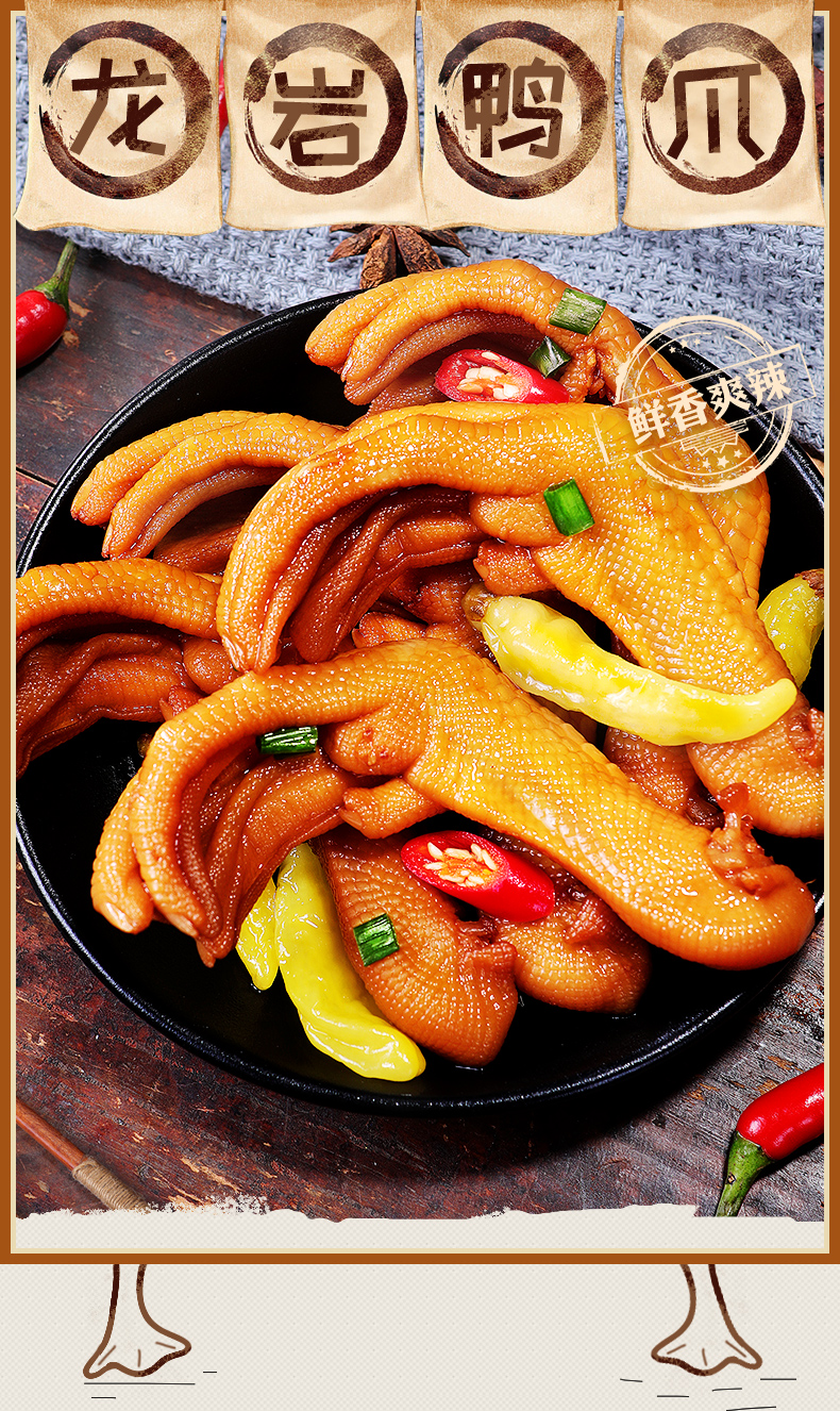 Паровые утинные лапки из Фуцзяни, хрустящие, острые, закуска для повседневного использования