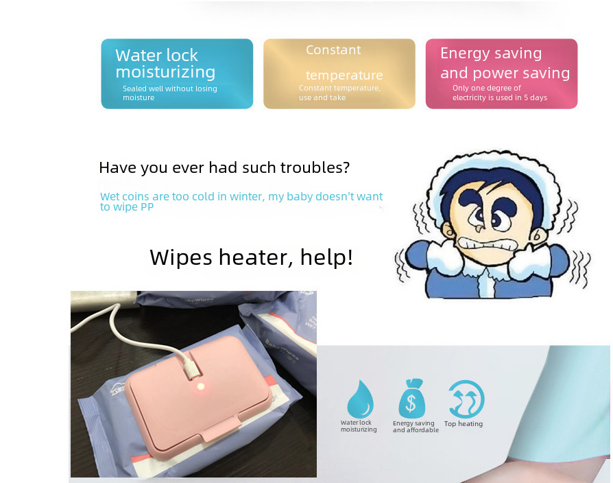 - USB Powered: Equipped with USB power, this heater can be used anywhere, anytime, ensuring your baby's wipes are always warm and ready.