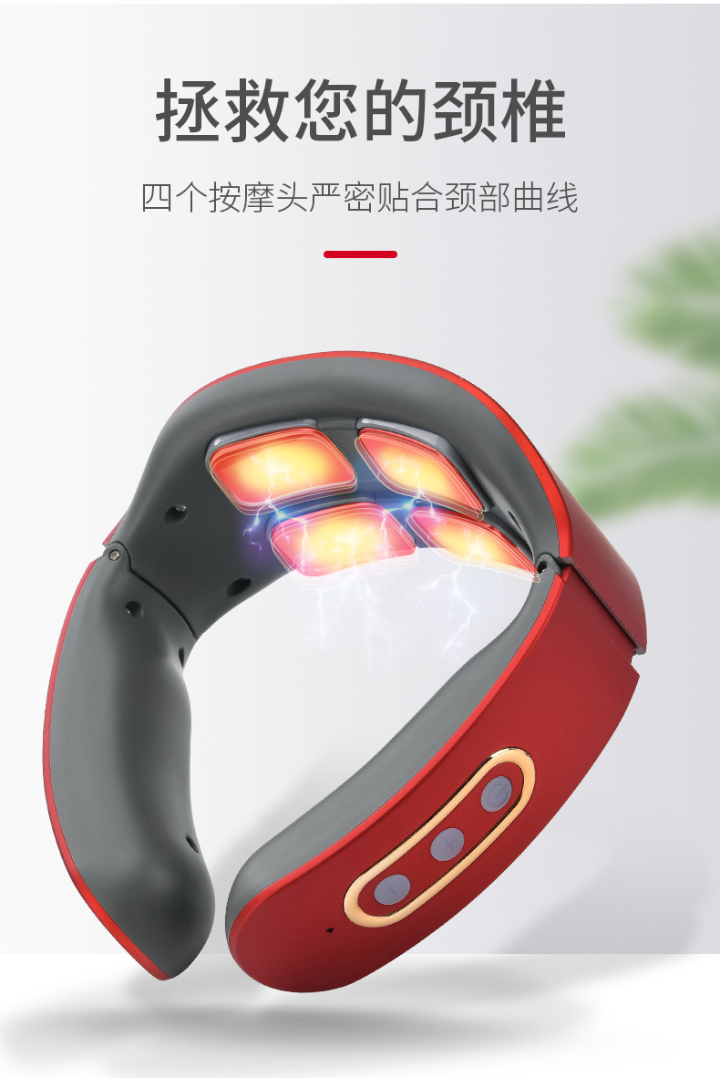 Электрический многофункциональный массажер для шеи с несколькими головками, пульсовая физиотерапия, защитник шеи, перезаряжаемый, горячий компресс, массажер для шейного отдела
