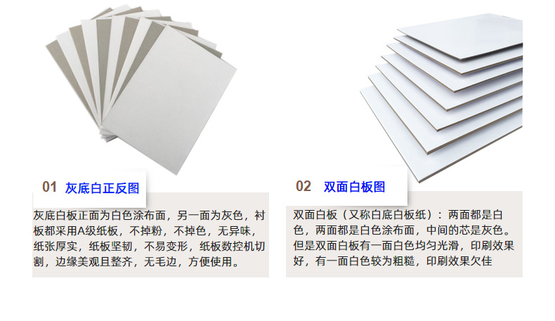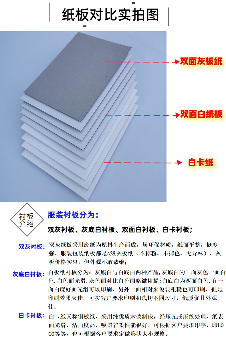 Оптовая продажа индивидуальной упаковки для одежды 300г, картон для подкладки A4, односторонняя белая бумага с серым фоном