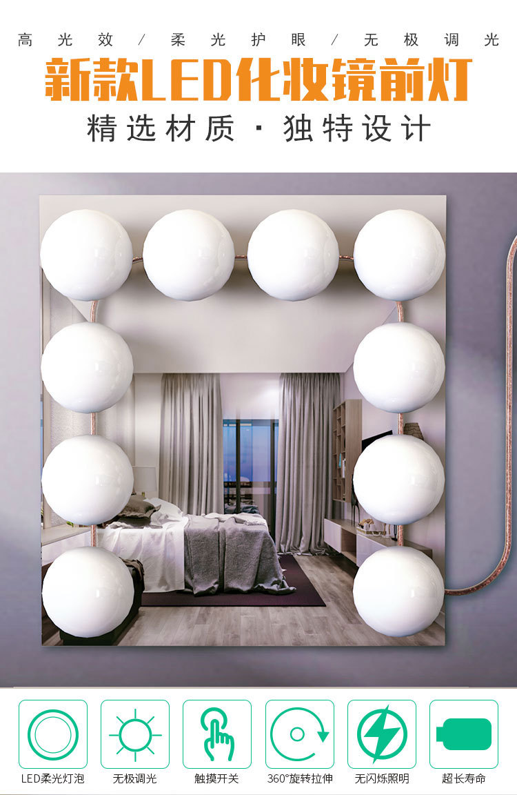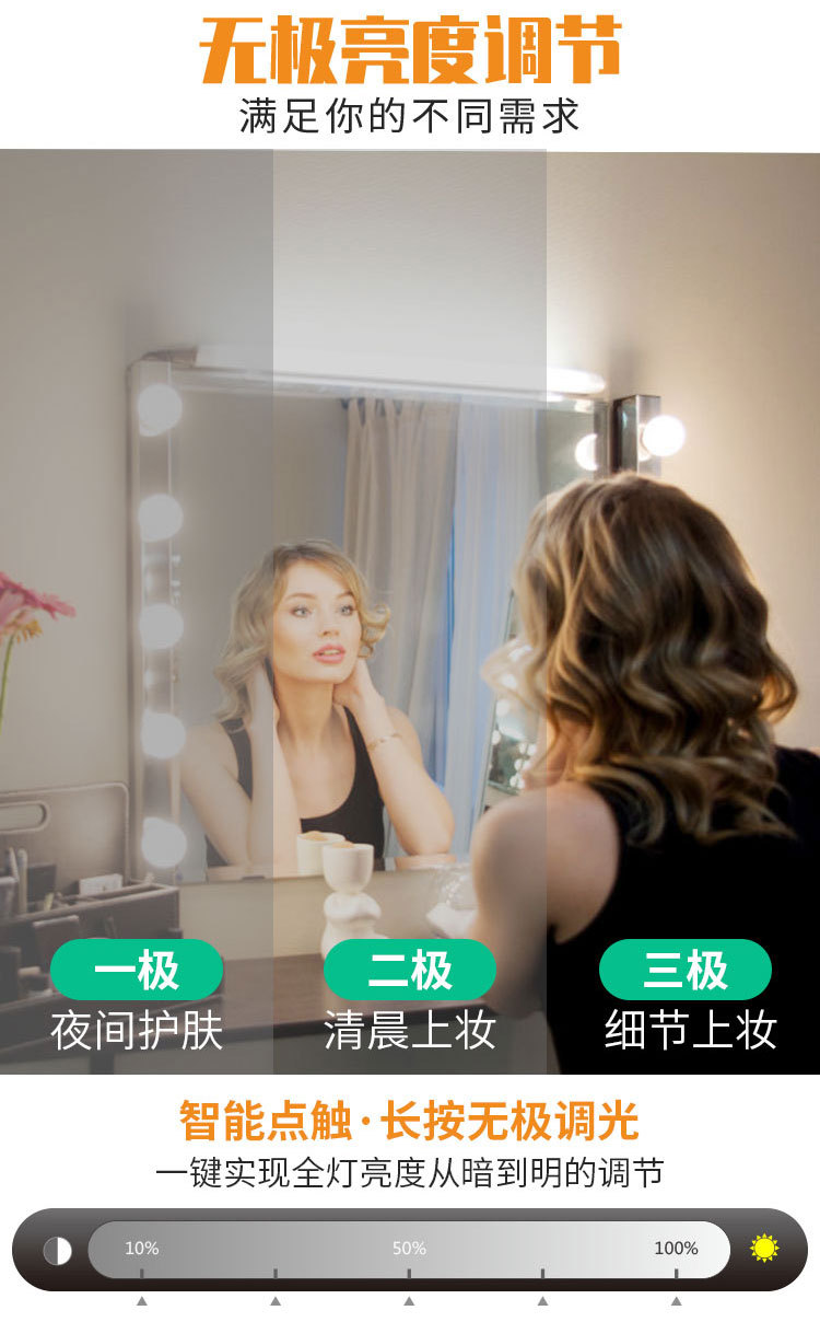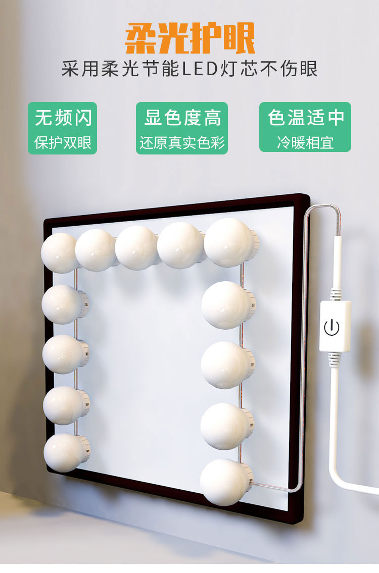 Зеркальная лампа для макияжа, LED подсветка туалетного столика, светильник для ванной, USB, три цвета, диммируемая, Голливуд