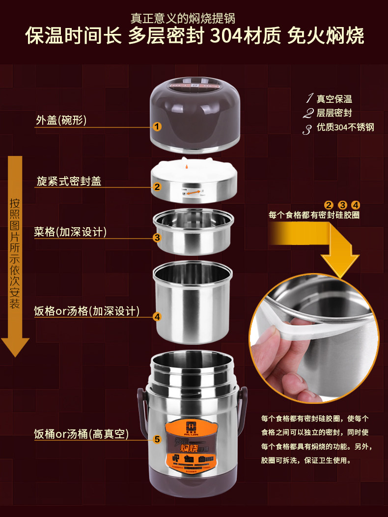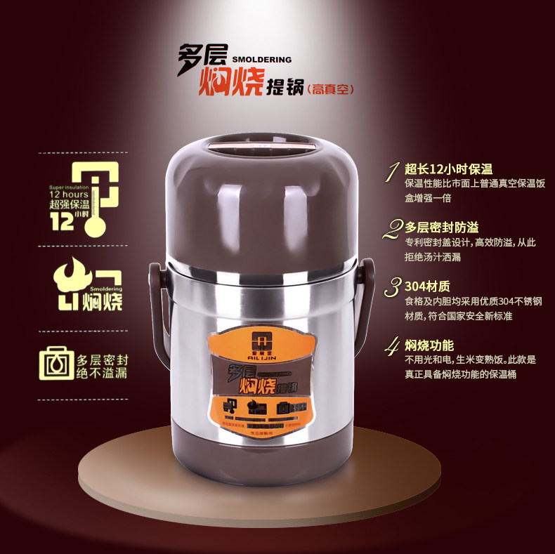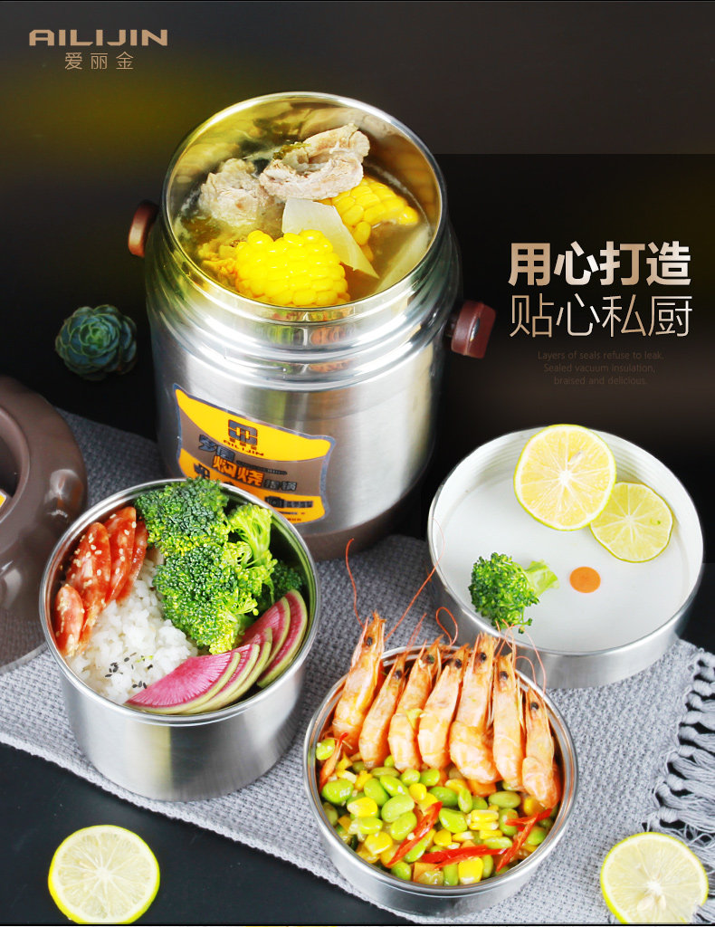 Многоуровневый кастрюля для запекания Alikin с высоким вакуумом 304 изолированная ланч-бокс ведро для офиса студентов 12 часов герметичная
