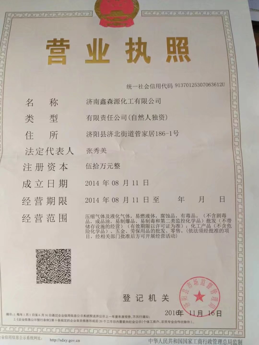 济南鑫森源化工有限公司,座落在美丽的泉城--济南,位于历山北路北首与二环北路交汇处--佳园化工市场A1-22号 邻近济青高速,北绕城高速,物流配送及为方便公司地理条件优越,交通方便快捷。有随时发往全国各地的货运专线,交通十分便利,为客户保征快捷供货。始终坚持“诚实守信,开拓创新”的宗旨,经过不懈的努力使公司业务得到迅猛发展。公司秉承��合法经营创造利润,以创新和发展为原动力,实现社会效益及企业价值最大化的企业使命和追求可持续健康发展、强化核心竞争力的企业经营目标。已经发展成为主业明晰,具有较强核心竞争力的化工公司。