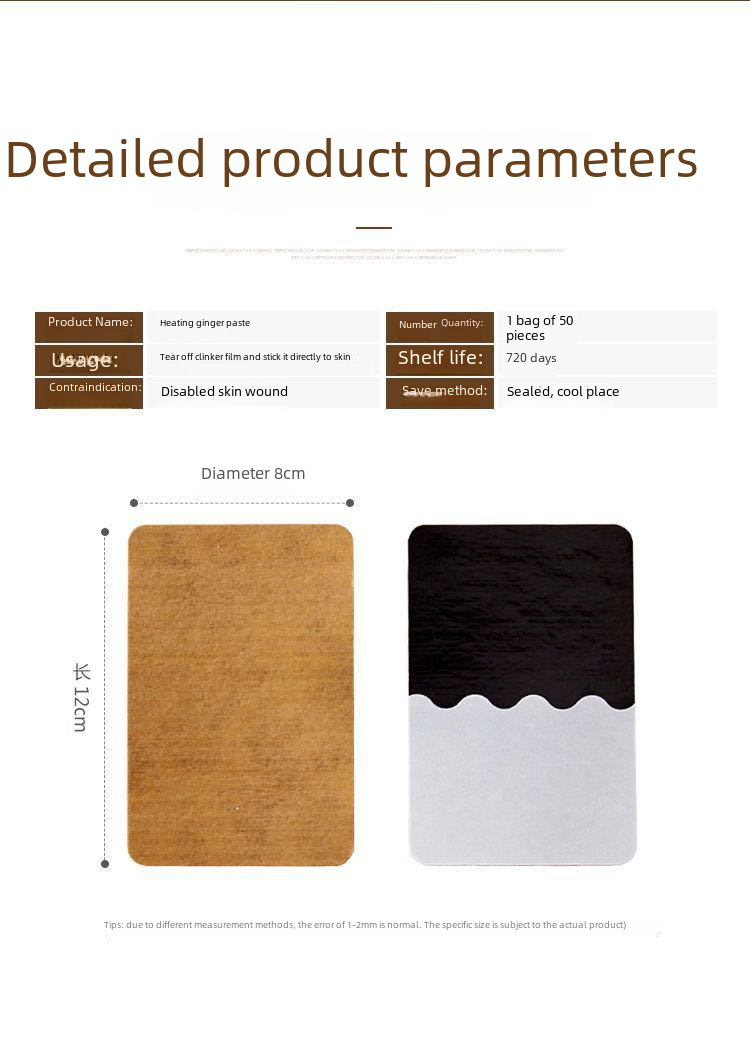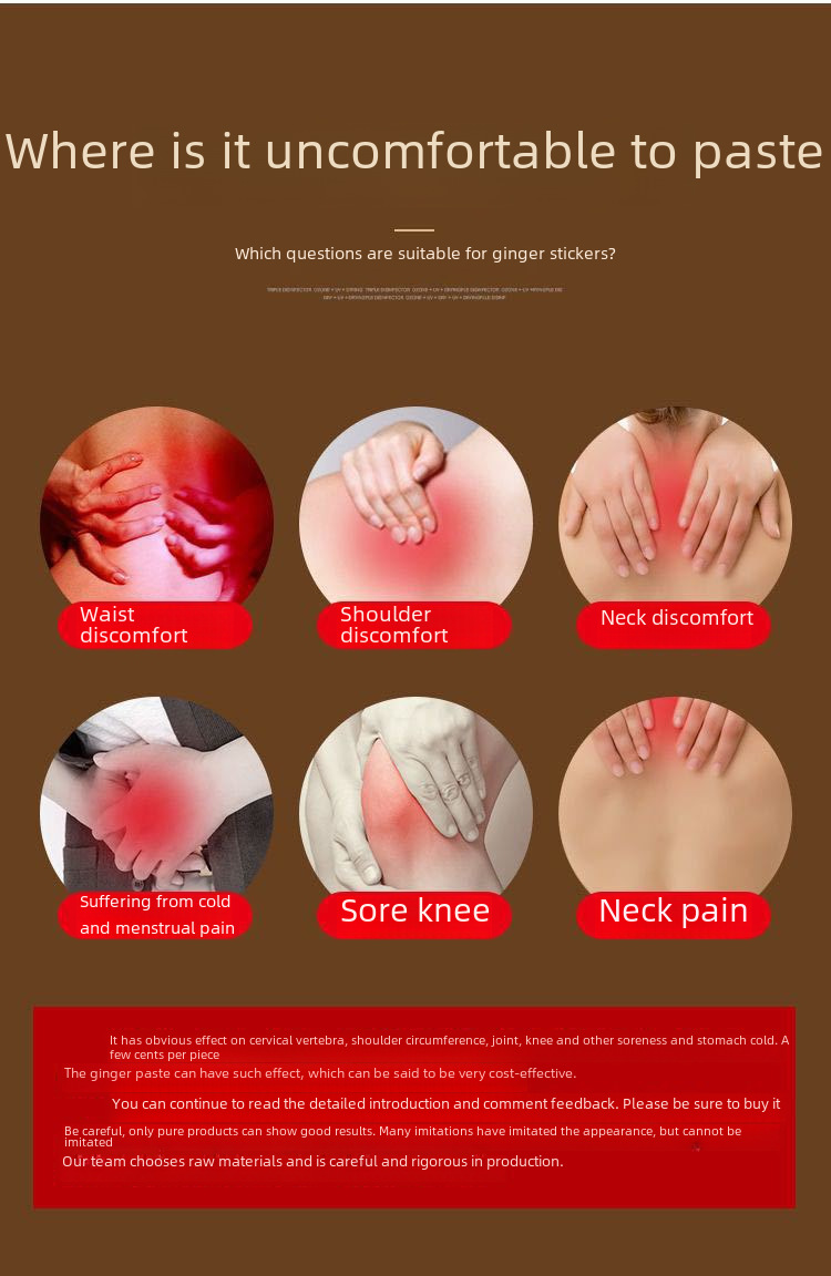 - Herbal Heat Source:This product utilizes original ginger as its heat source, providing a natural and effective way to warm up joints and muscles.