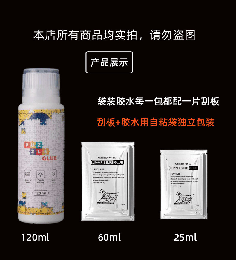 Клей для пазлов в пакете, 25мл, прозрачный PVA, с лопаткой, для 1000 и 500 частей