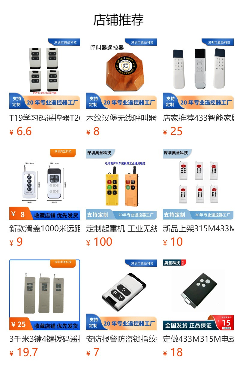 ![]() | 433 frequency 1000-18o remote control | ¥13.0 / ≈ 157 ₽ | 4826 | 5990975928189 | |