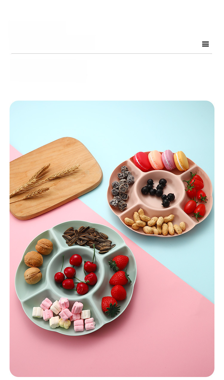 - Creative Design:This fruit plate features a unique and creative design, perfect for serving nuts, seeds, and dried fruits. Its partitioned compartments allow for an organized display of your snacks.