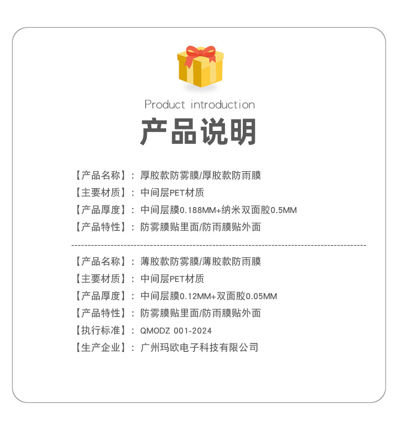![]() | (bare film + tools) this item does not include the packaging box | Thick glue plus size [1 piece anti-fog + 1 piece rainproof] 2 pieces in total | ¥4.8 / ≈ 58 ₽ | 9889 | 6066515819524 | |