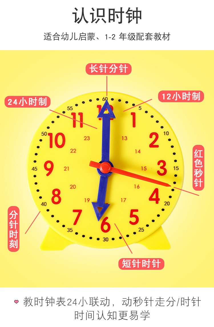 Модель часов для обучения времени, учебные пособия для первоклассников, три стрелки