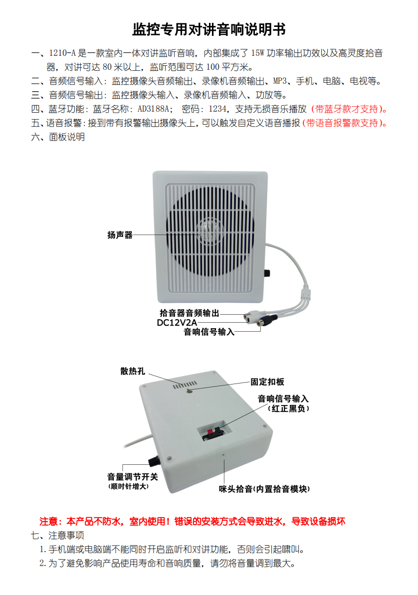 Мониторинг динамика с интегрированной голосовой интеркомом, высокая четкость, видео камера аудио