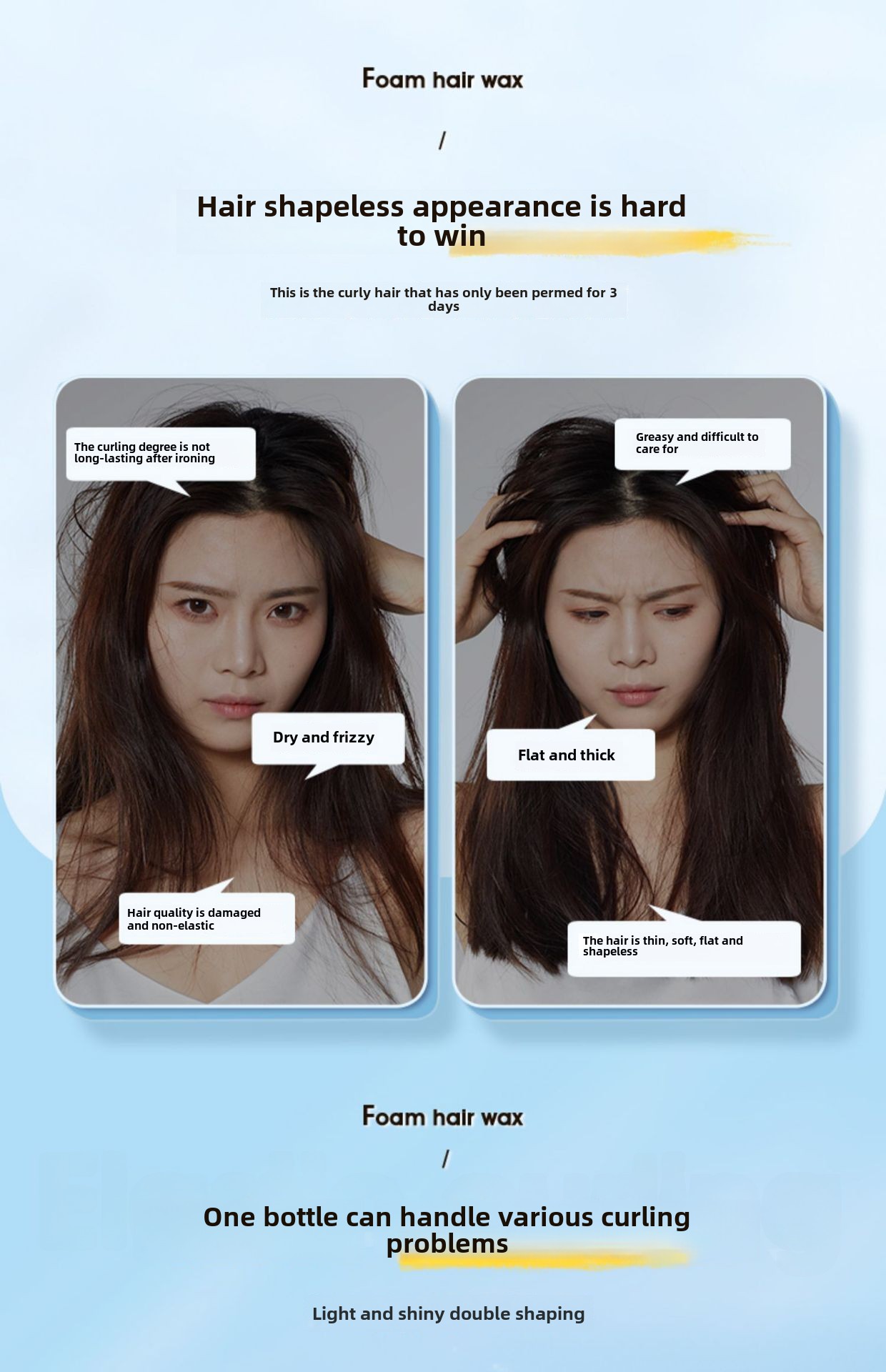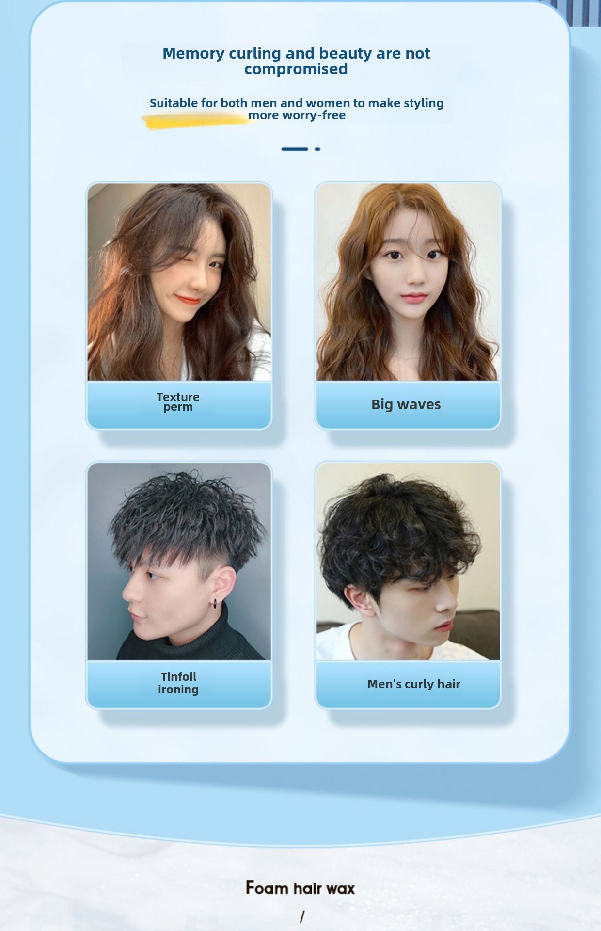 - Foam Hair Wax:This 450ml foam hair wax is a perfect blend of moisture and volume-boosting properties, ideal for achieving a French style curl.