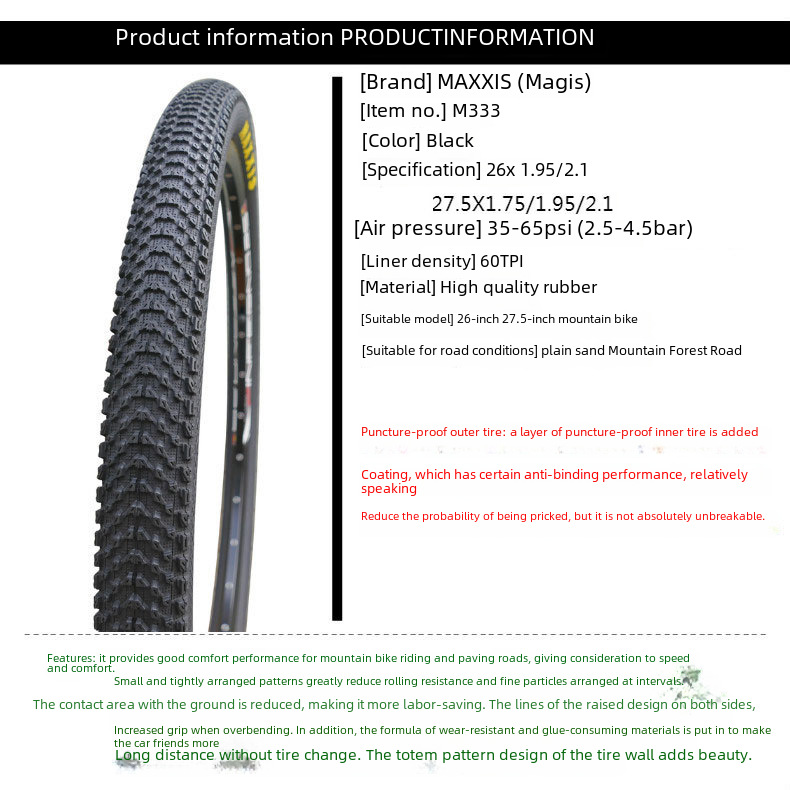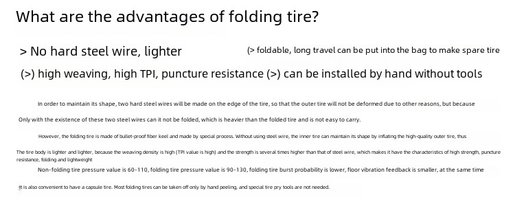 - High Standard Pressure:With a standard pressure of 35~65psi, these tires provide optimal performance for your rides, ensuring a smooth and comfortable ride.