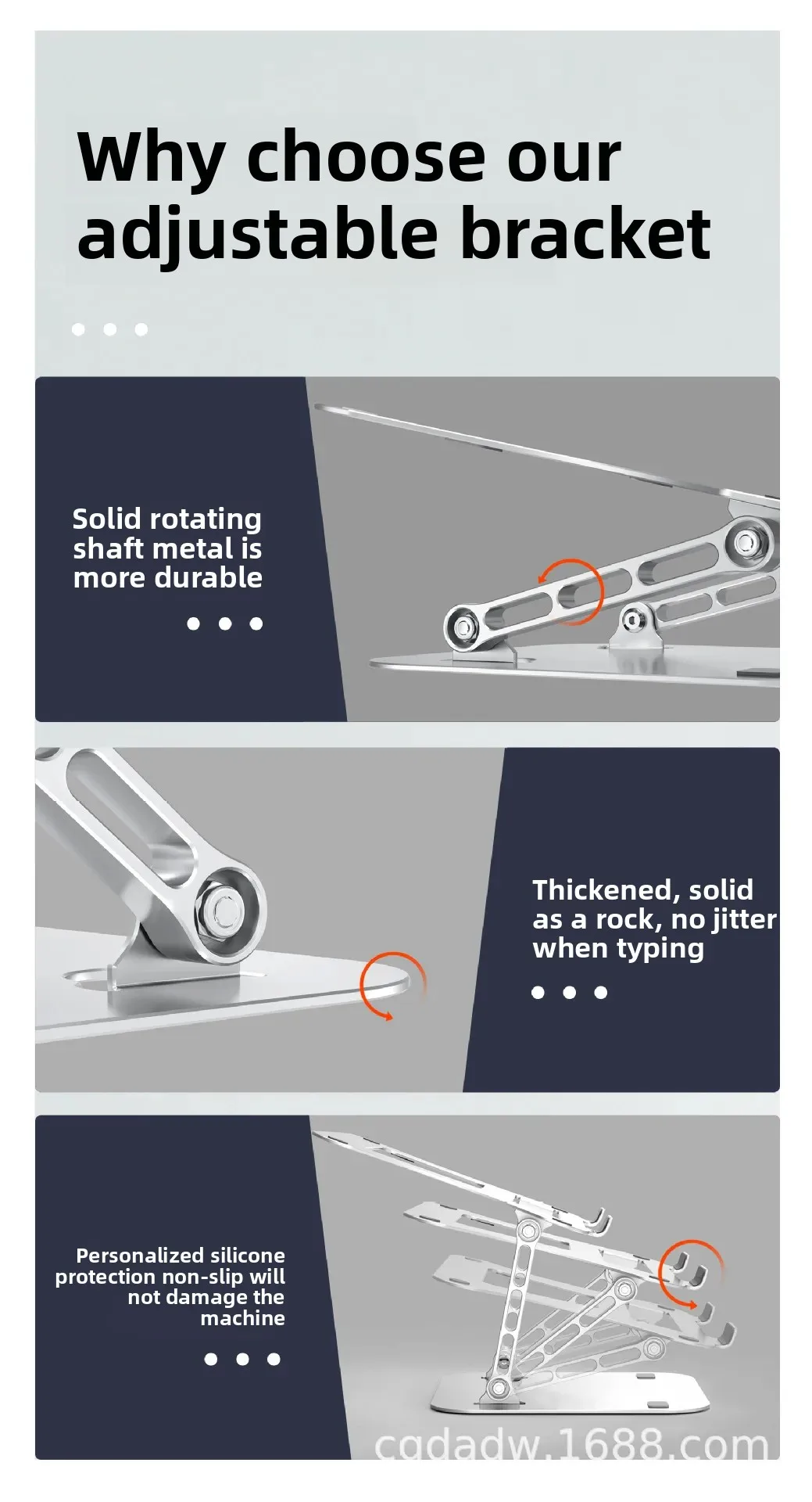 - Aluminum Alloy Material : Crafted from durable aluminum alloy, this laptop bracket ensures long-lasting use and optimal heat dissipation.