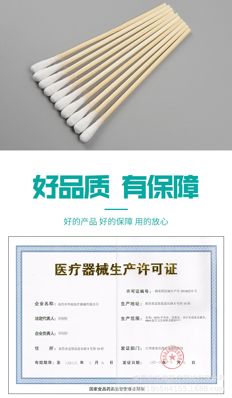Медицинские стерильные ватные палочки 10см*20 для дезинфекции ран одноразовые