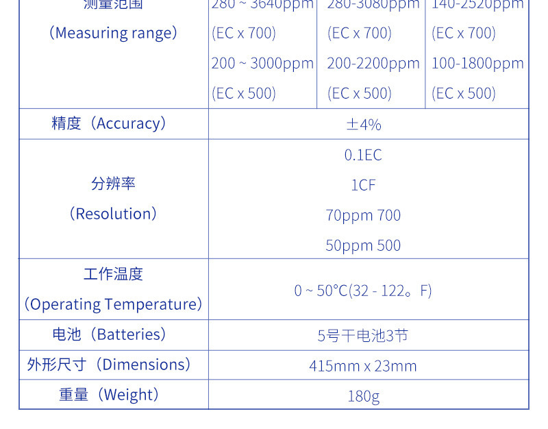 Диапазон измерений 0.4~5.2EC