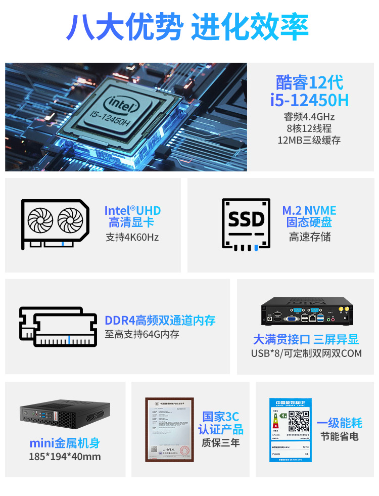 Минихост Rainbow Core 12-го поколения i5-12450H для небольших офисов, компьютер N5095