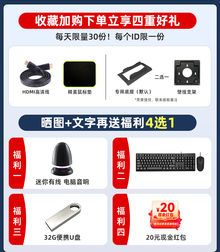 Список упаковки Packing box, manual, base bracket, hdmi cable