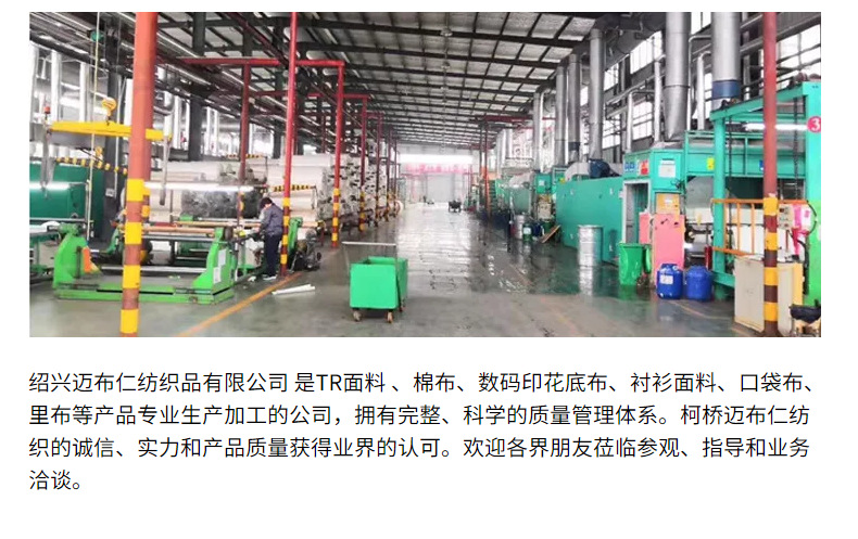 Основной бизнес Mainly engaged in tr serge fabric tr elastic serge fabric color spinning four-way stretch polyester four-way stretch double-layer four-way stretch suit workwear work clothes fabric