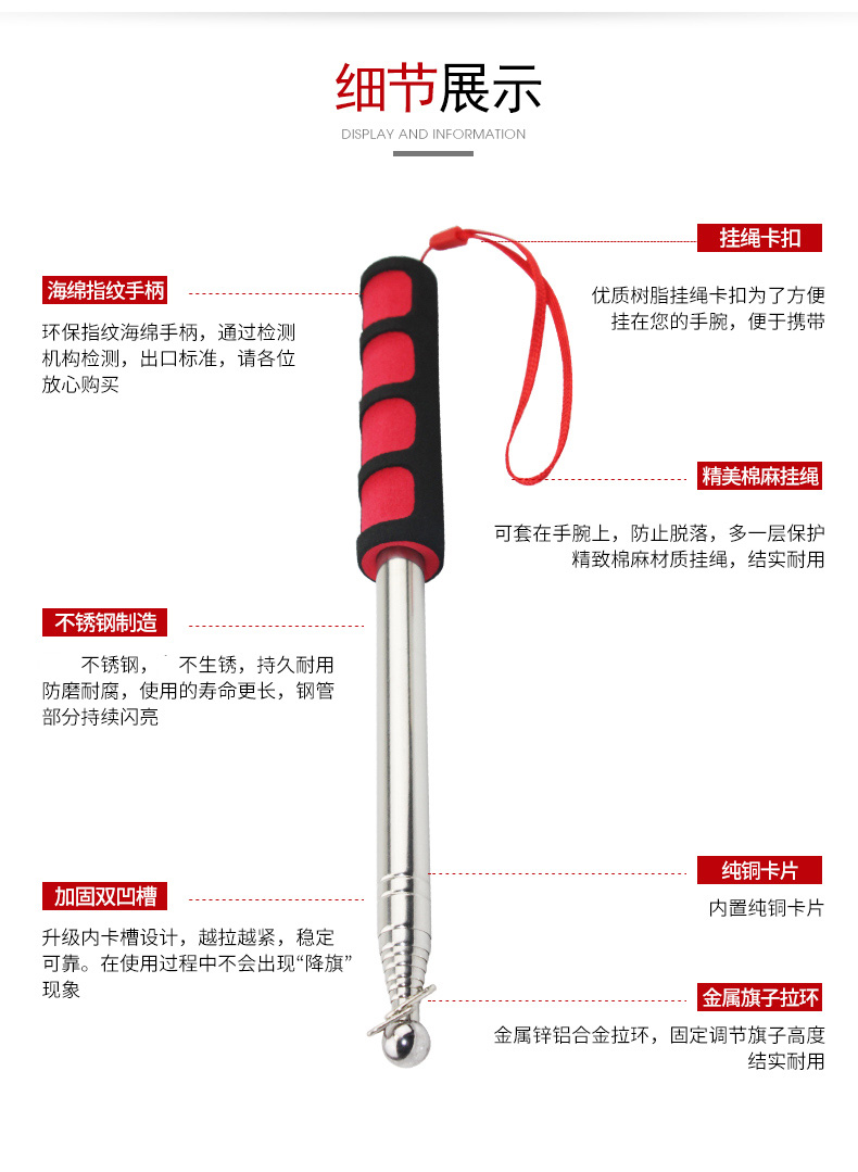 Флагшток для экскурсоводов, 1.2 метра, 1.6 метра, 2 метра, телескопическая указка из нержавеющей стали для обучения