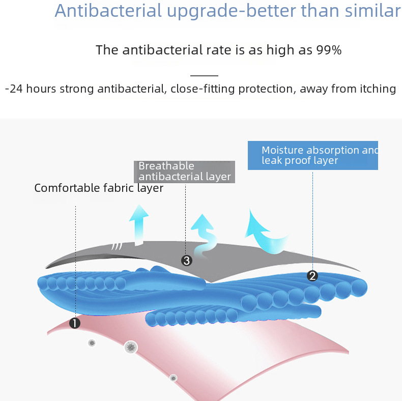 - Transdermal Absorbent:These panties are designed with a transdermal absorbent that helps to keep the skin dry and comfortable, reducing the discomfort often associated with menstrual periods.
