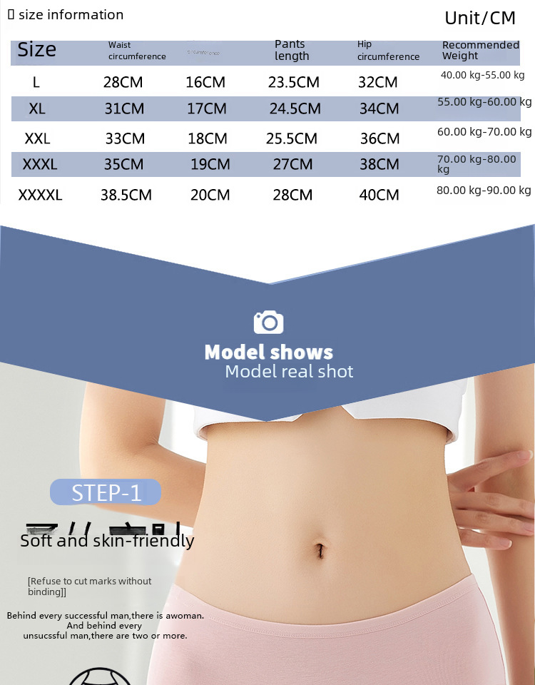 - Size Range Accuracy:With a size range of 80~180 kg, these panties cater to a wide spectrum of body types, ensuring a precise fit for every woman.