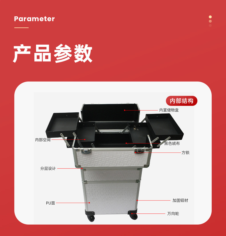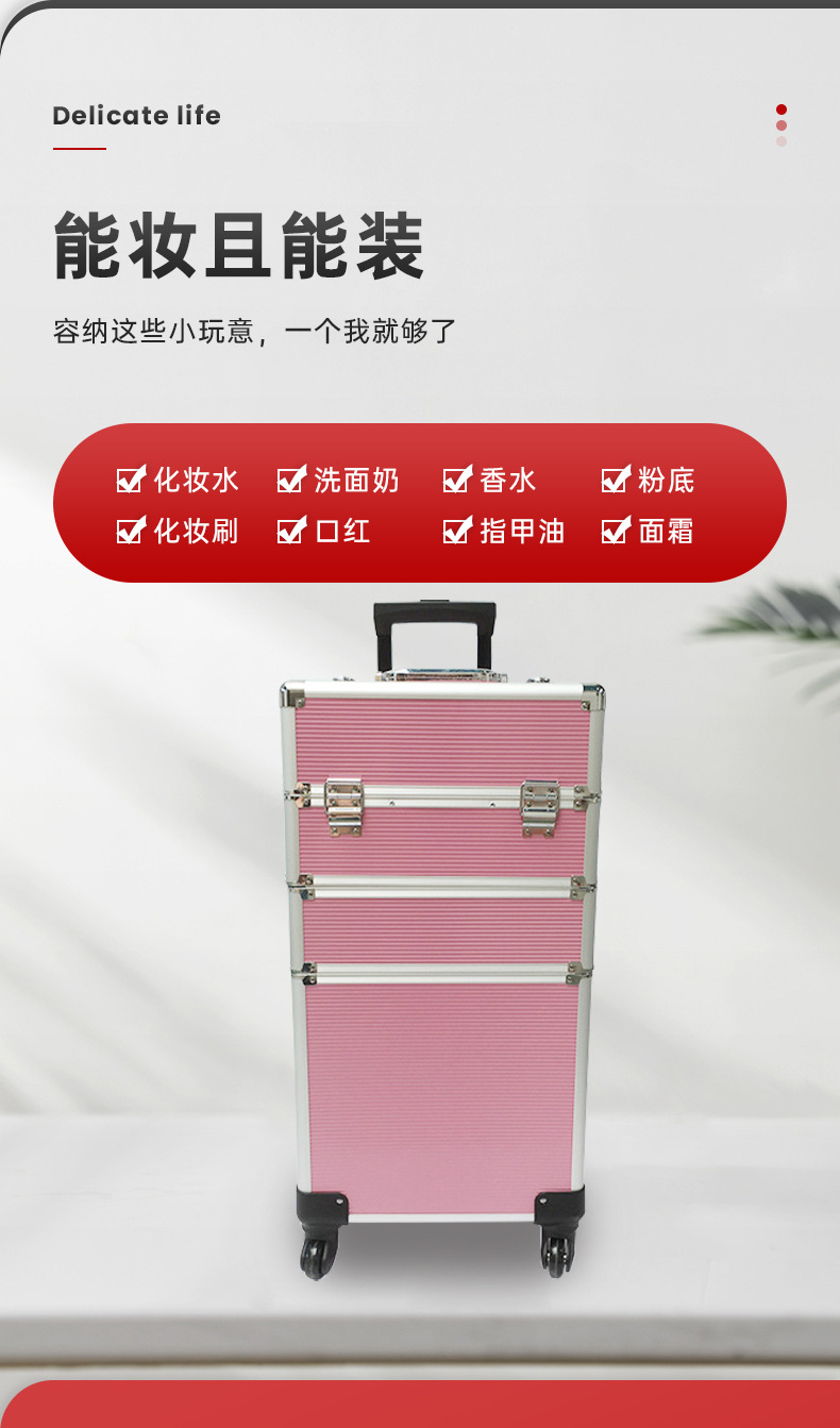 Косметический кейс на тележке с универсальными колесами, бесшумный, специализированный набор инструментов для макияжа и нейл-арта