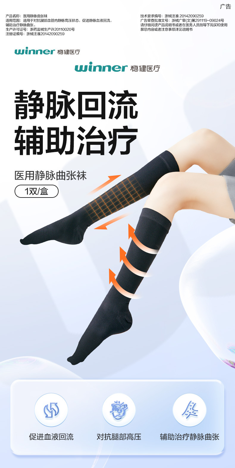 Компрессионные чулки для женщин Winner Robust Medical II класса для лечения варикозного расширения вен, длинные