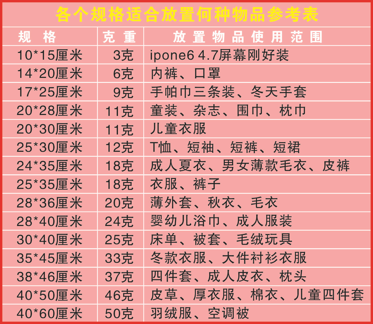 特色:有韧性,比较柔软,适用于童装 婴幼儿服装、家居旅行收纳袋、成人衣服包装袋 。