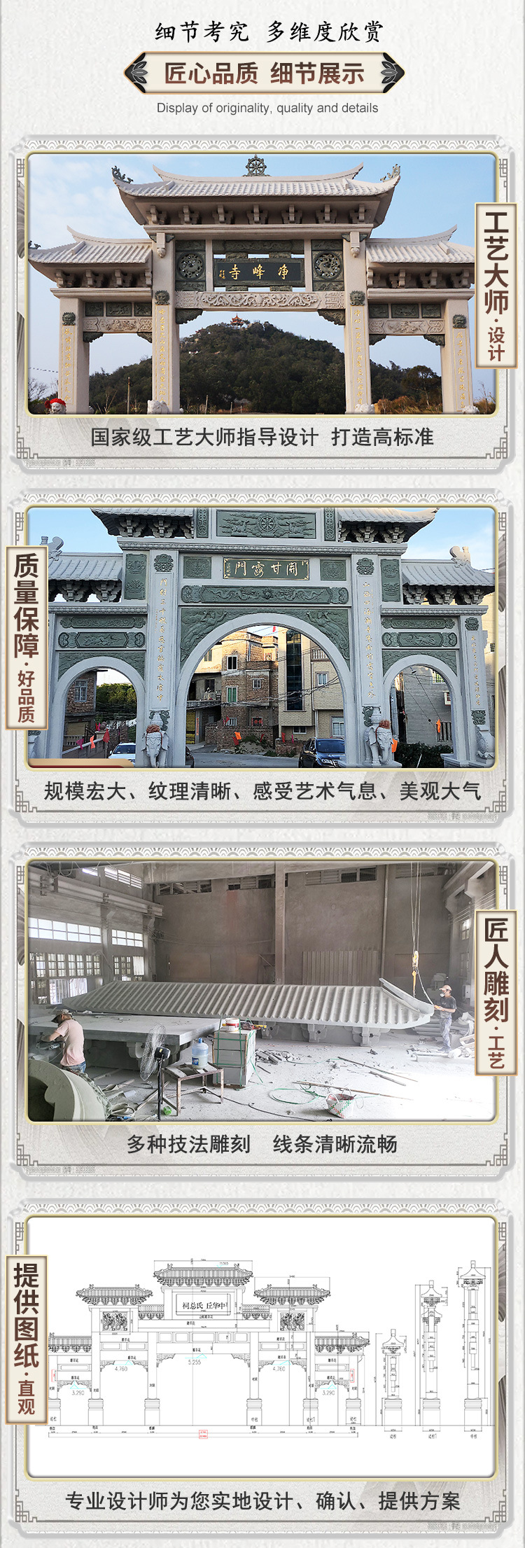 Процесс гравировки Hui'an stone carving archway carving craftsmanship