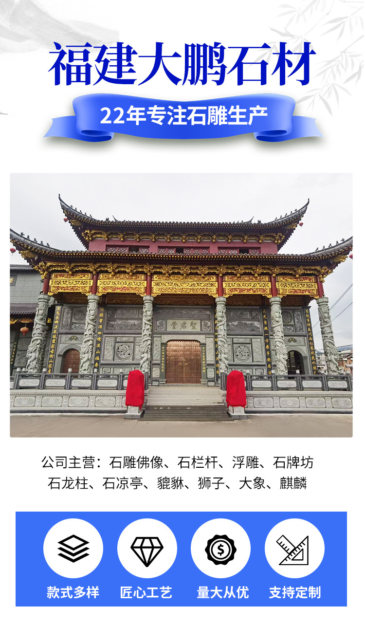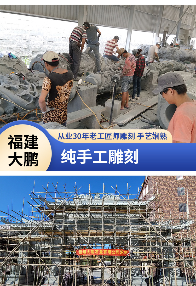 Производитель каменной резьбы Фуцзянь, индивидуальный заказ, большой храм, предковый зал, резьба в виде арки из блаустона