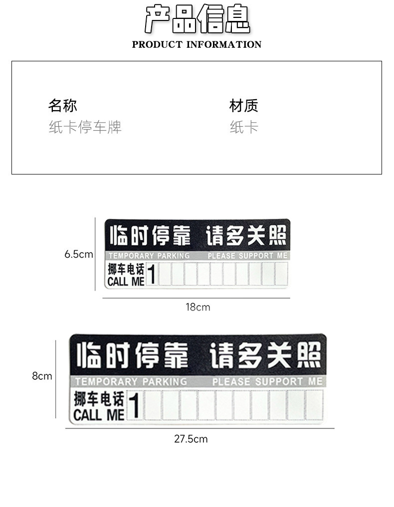 Бумажная карточка для парковки автомобилей, временный номерной знак, пластиковая карточка для парковки, мобильный телефон