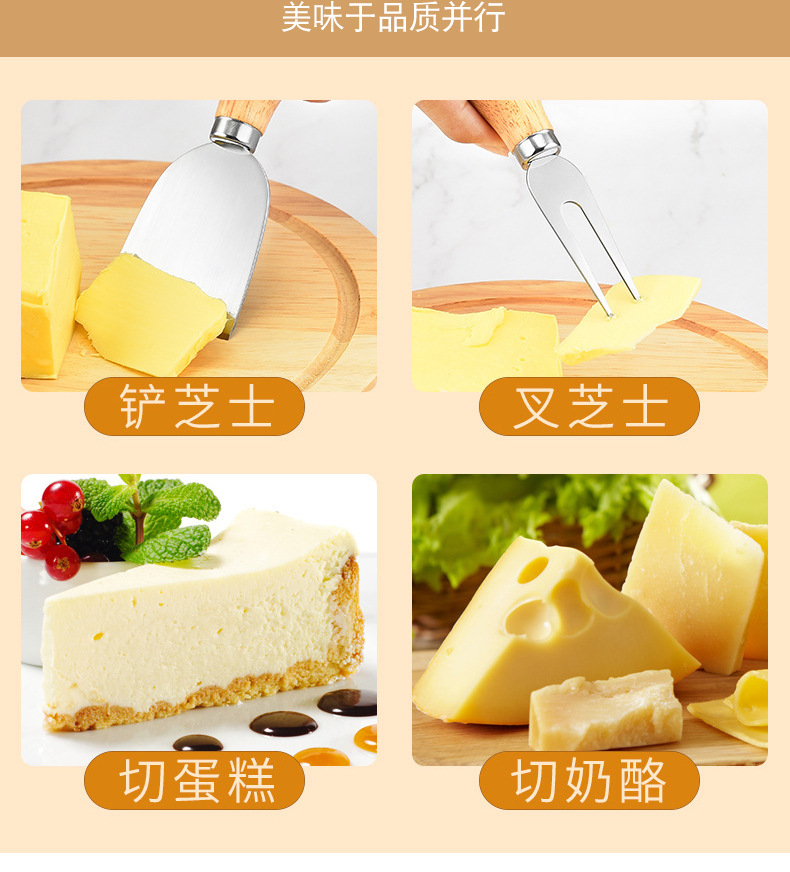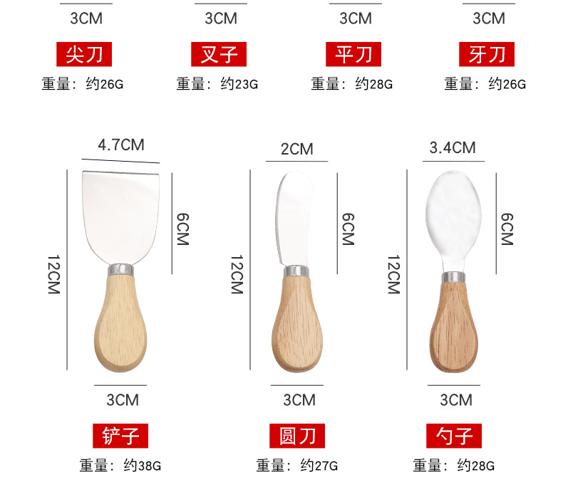 Кросс-бордерная горячая распродажа деревянная ручка для сыра и масла, нож для сыра, нож для крем-сыра, лопатка из нержавеющей стали для торта, нож для пиццы, вилка