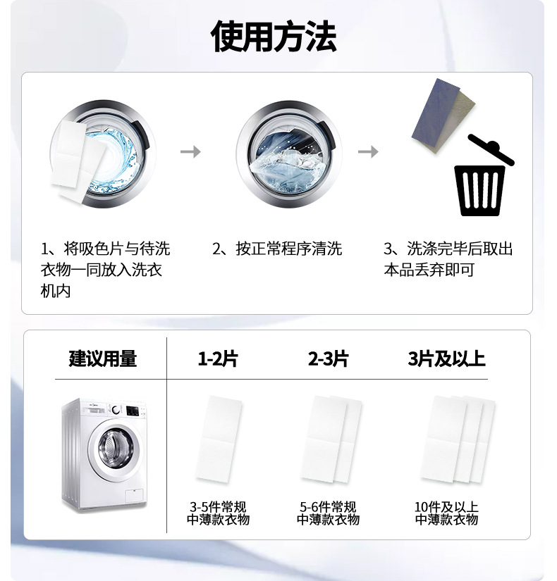 工厂直销超值吸色片衣物防串色简易包装强吸附色母片吸色片防串染
