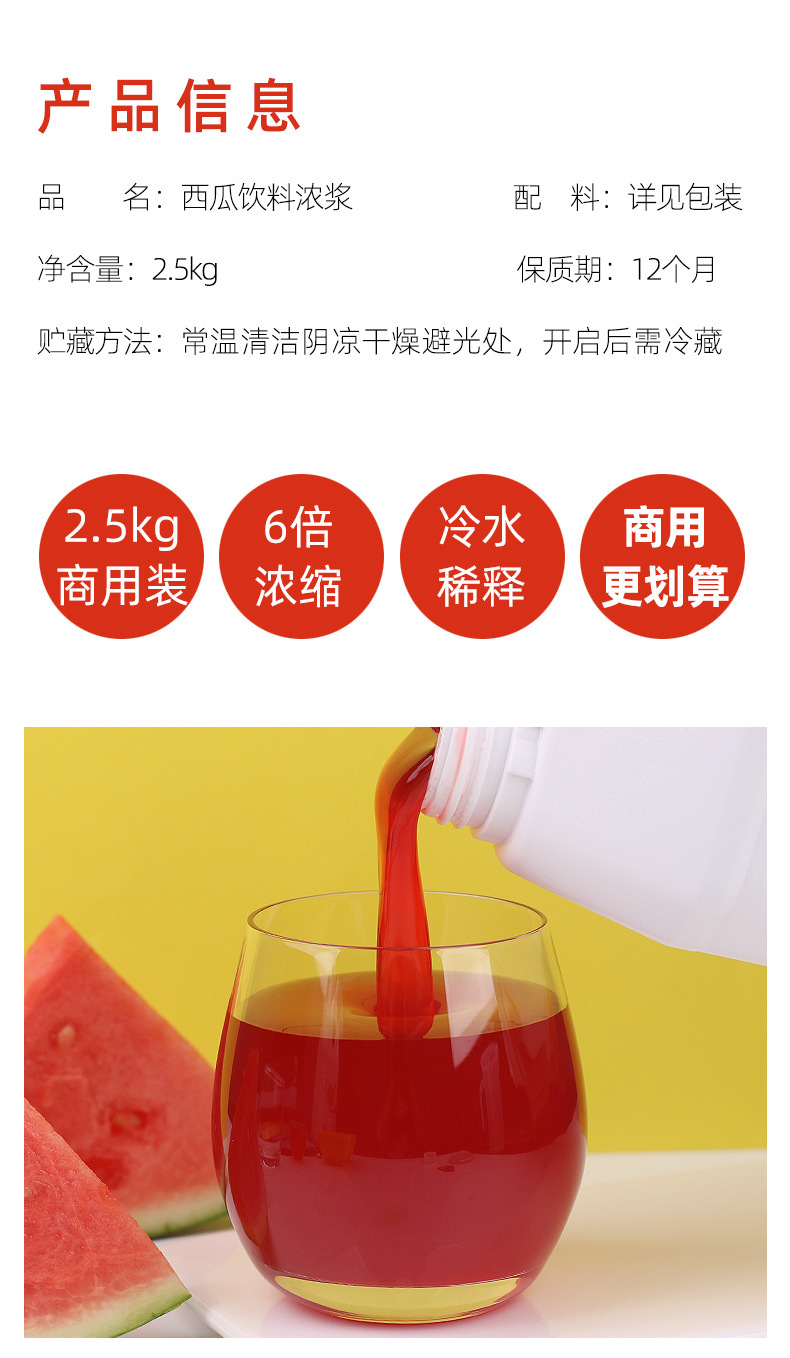 西瓜果汁浓浆 ,2.5kg/瓶,一箱是8瓶,欢迎新老客户批发!一瓶盖21g左右