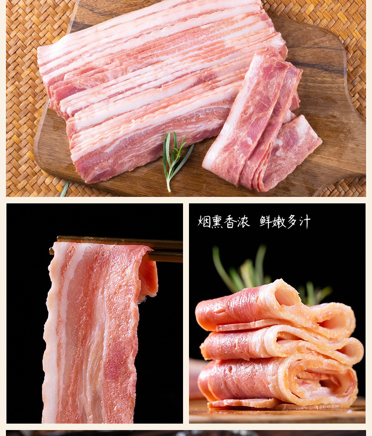 Бекон из пяти цветов нарезанный 3кг для выпечки, ручной работы, для завтрака, сэндвичей, чисто свиной снежный бекон коммерческий
