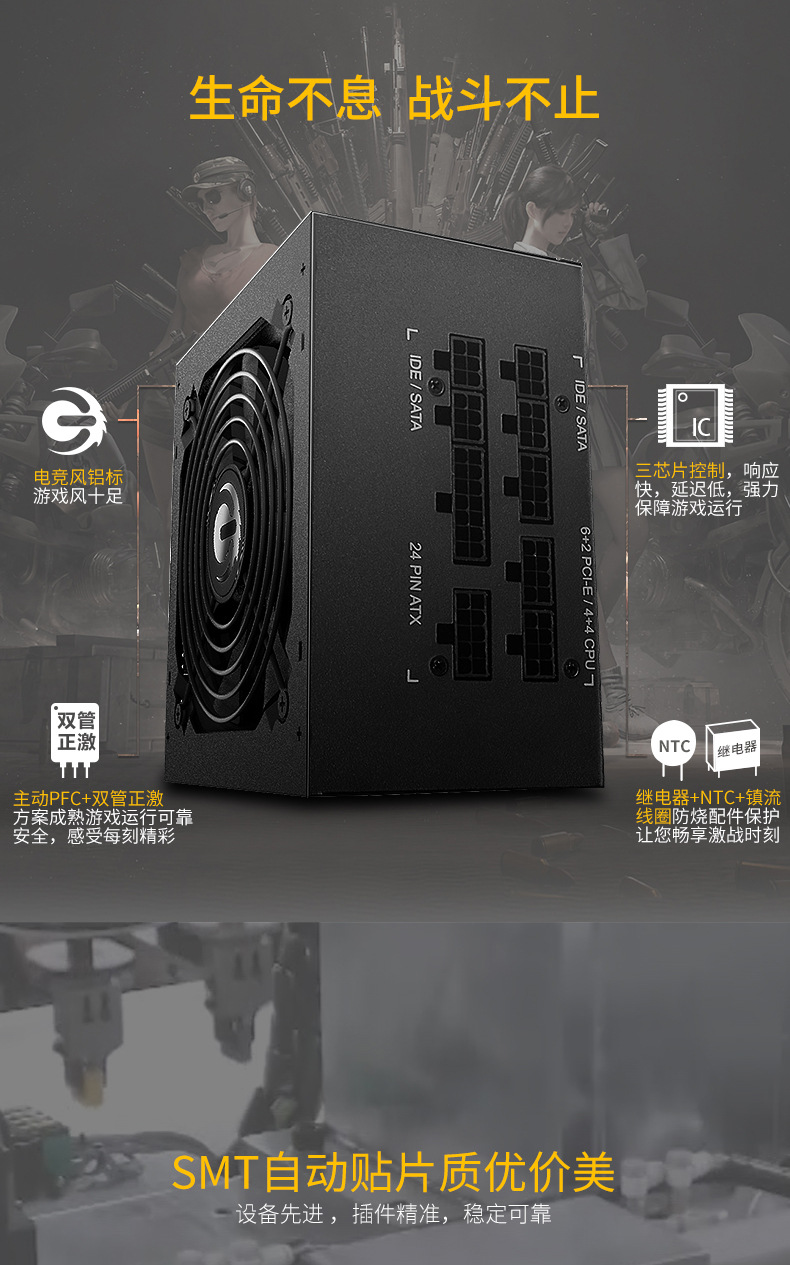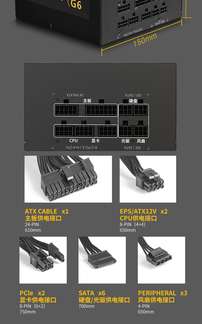 Блок питания для настольного компьютера Great Wall G6, золотая версия, полный модуль, бесшумный, мощность 650W