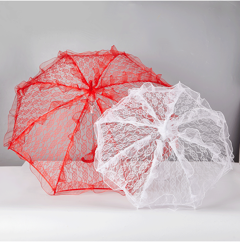 Зонт с кружевом для свадьбы, зонт для девочки-цветка, реквизит для съемки, однотонный кружевной плетеный зонт, маленький зонт, дворцовый зонт
