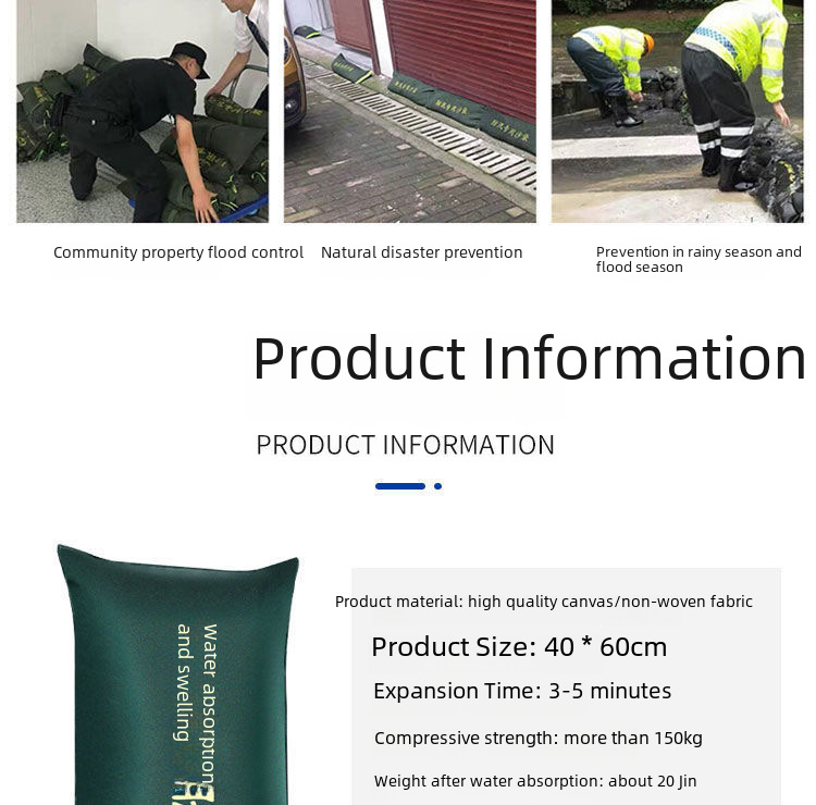 - Hassle-free Design:No need for separate sand bags or sandbags, this bag expands automatically when submerged in water, making it easy to use in any situation.