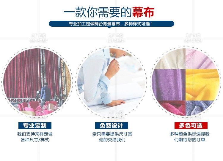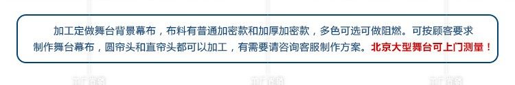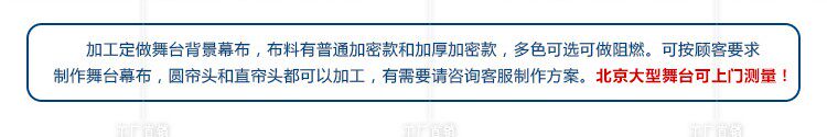 定制产品不接受7天理由退换货。幕布及相关产品均按照客户需求定制。因此,请各位买家在购买前仔细与客服确认相关信息。如果是产品本身的质量问题,我们将无条件的为您退换货,邮费本店承担(邮费请先垫付,不接受到付和平邮)。如买家自身的原因要求退换货,不属于本公司的退换货范畴,请望大家互相体谅,理解!