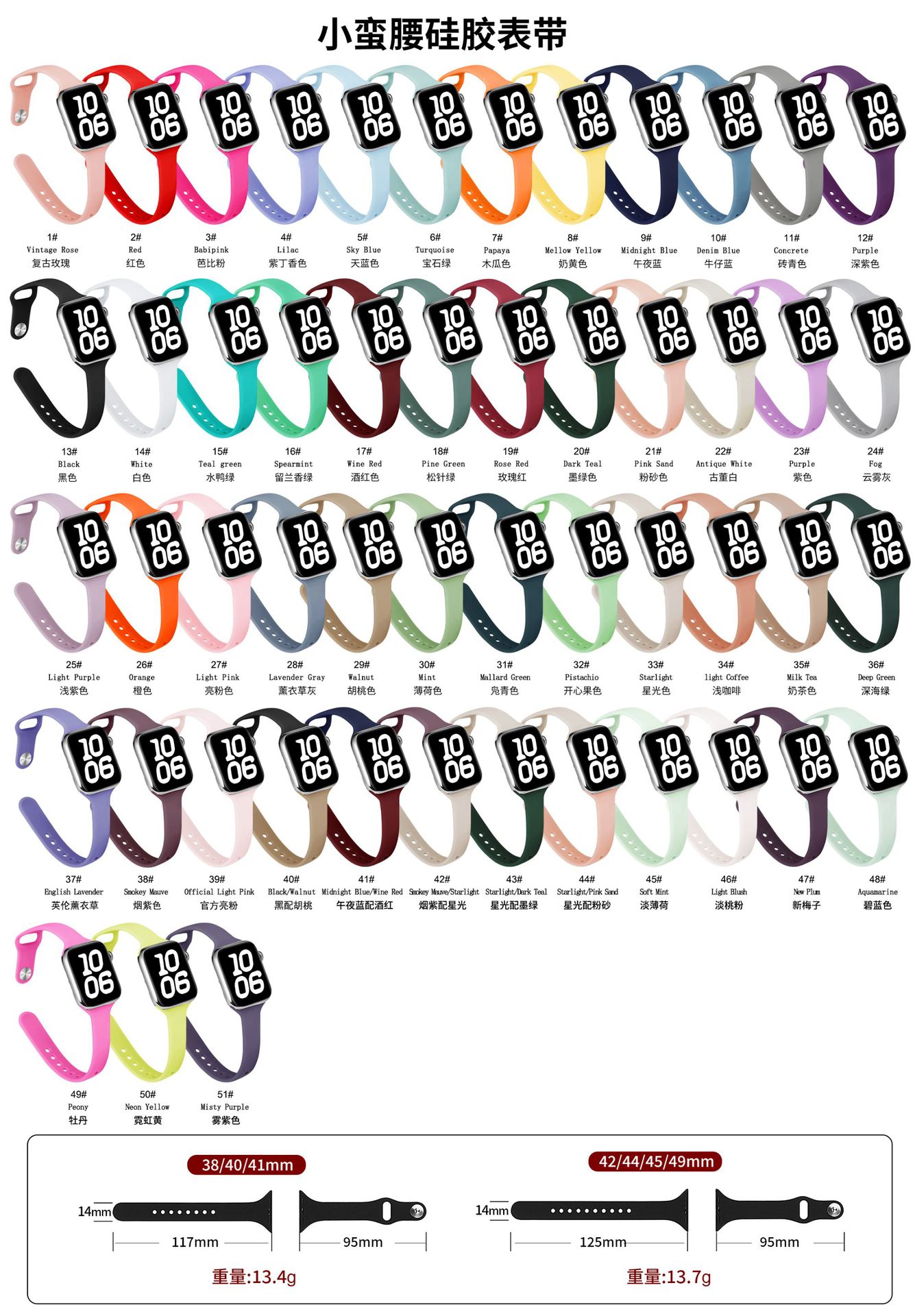 ![]() | 38/40/41/10-11 generation 42mm lilac 4# | 1шт: ¥8.00, 100шт: ¥5.00, 1000шт: ¥4.50 | 9989 | 5932544204871 | |