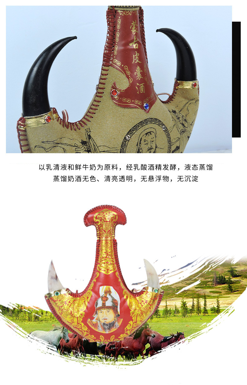 Специальное молочное вино Внутренней Монголии Вино из кожаного горшка Дистиллированное молочное вино 38 градусов 500 мл Кожаная сумка ручной работы Подарочная коробка